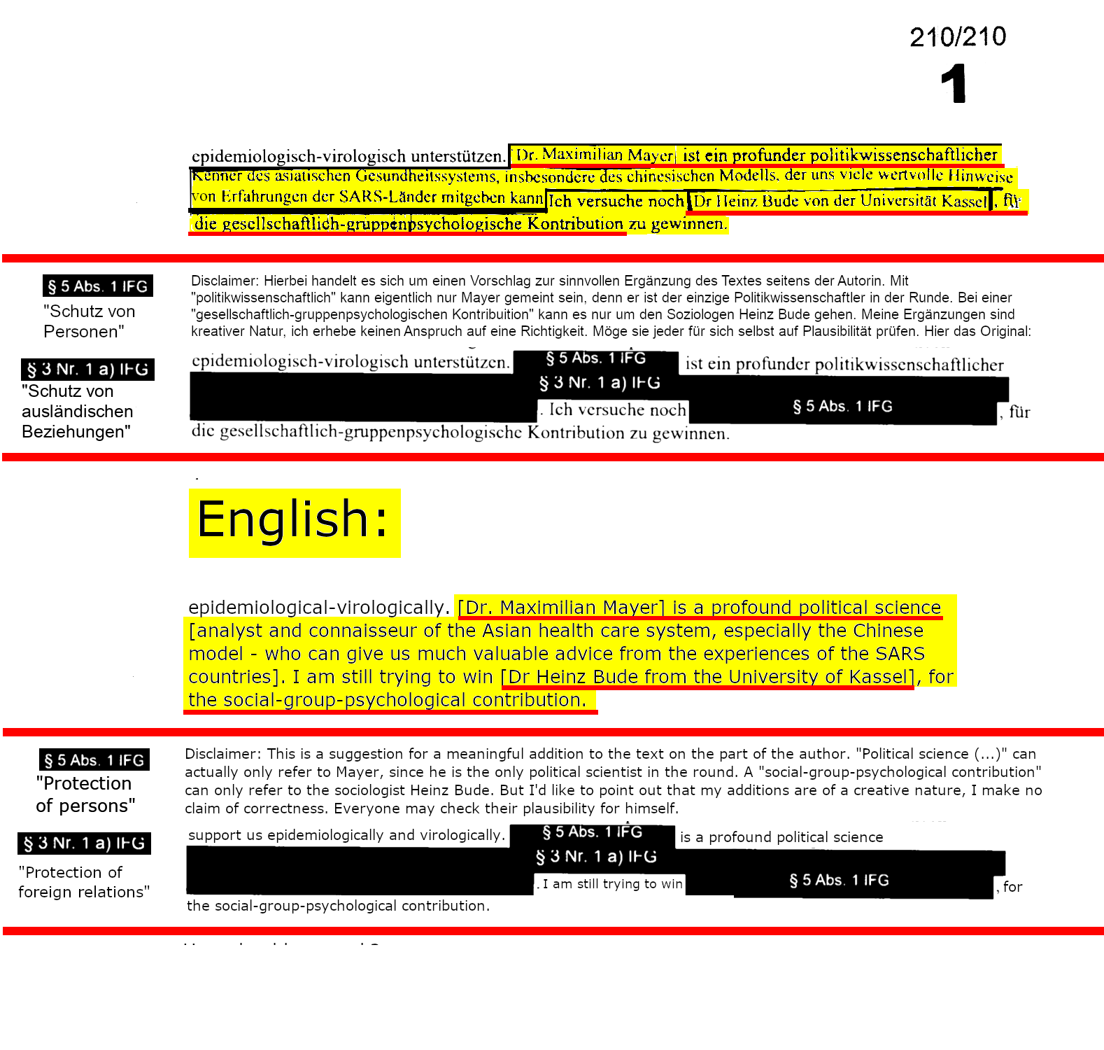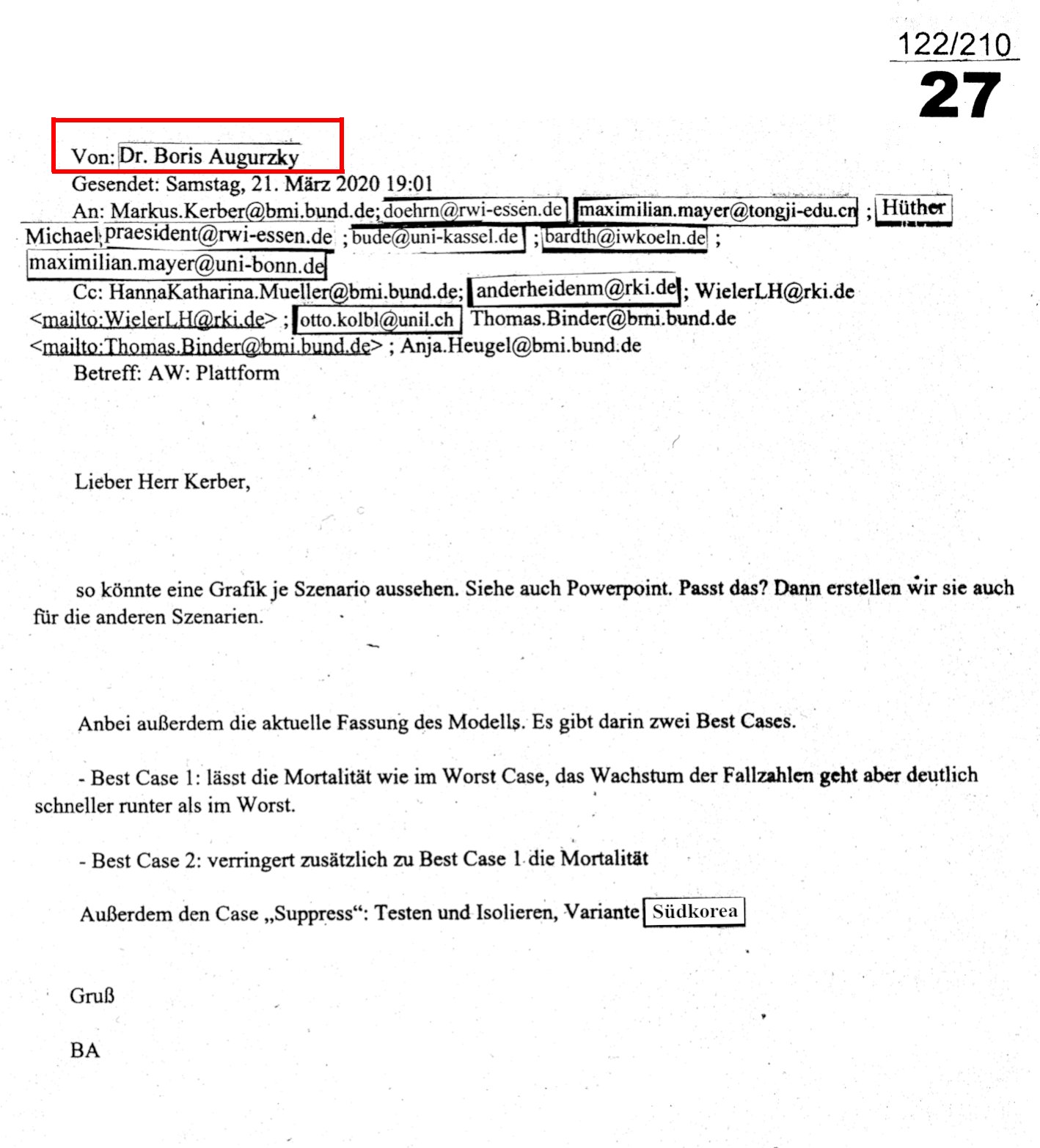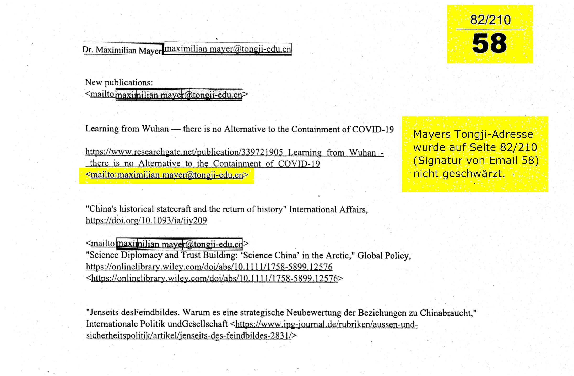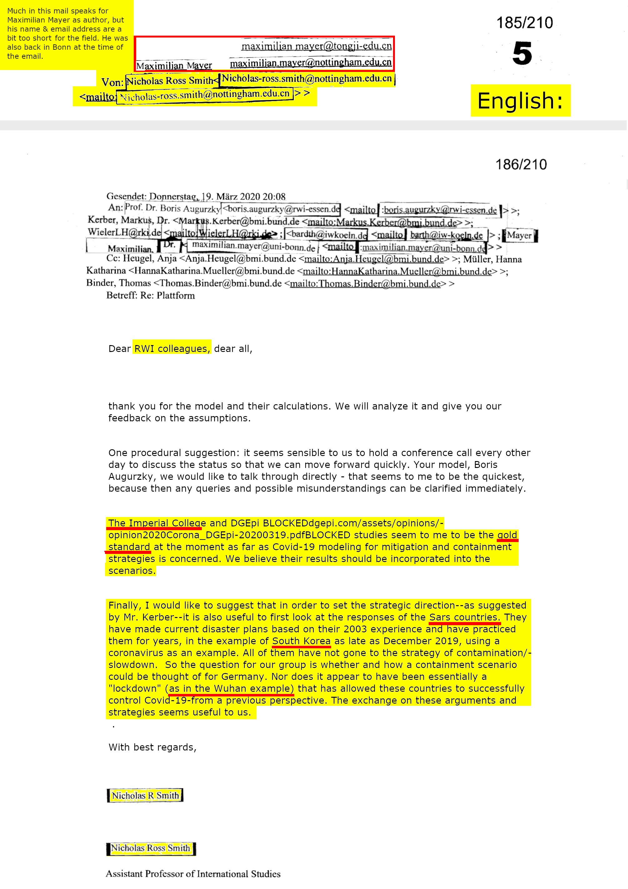 35/210: Ich mag falsch liegen, dass die Mail von @1NRSmith stammt: Smith streitet jede Beteiligung ab. Doch wer ist dann „NICOLAS“, den @mayer_iras in EMAIL 9) erwähnt, und den das @rki_de zu schwärzen vergaß? Der für die Bereitstellung von chinesischen Dokumenten zuständig war?