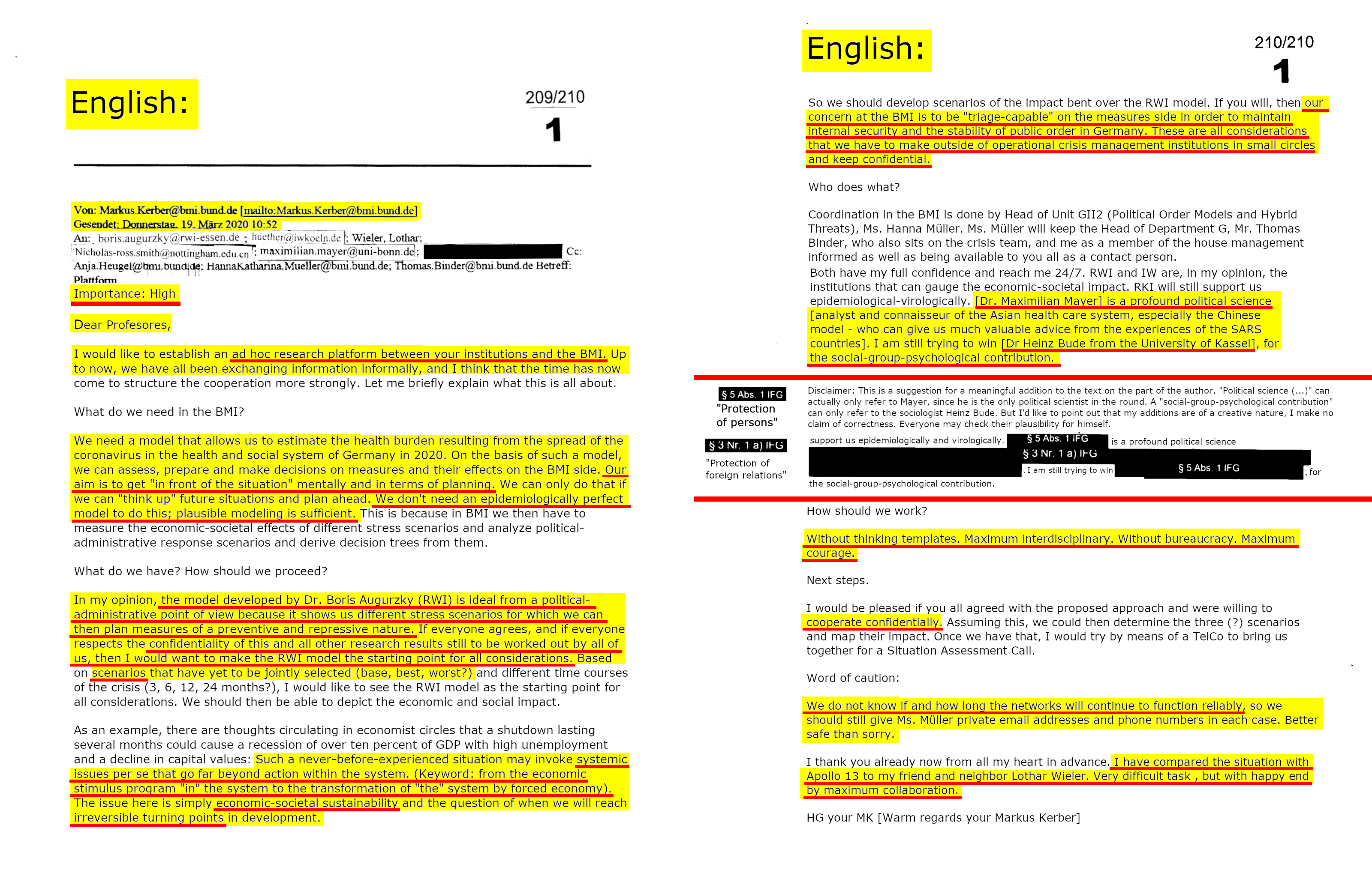18/210: Wegen des befürchteten Netzausfalls bittet Kerber die Autoren zusätzlich um die Hinterlegung privater Daten: „Sicher ist sicher“. Die @BMI_Bund-Emails bestätigen meine Vermutung, dass sich Horst Seehofer und Markus Kerber im März 2020 in einer Art "Panikmodus“ befanden.