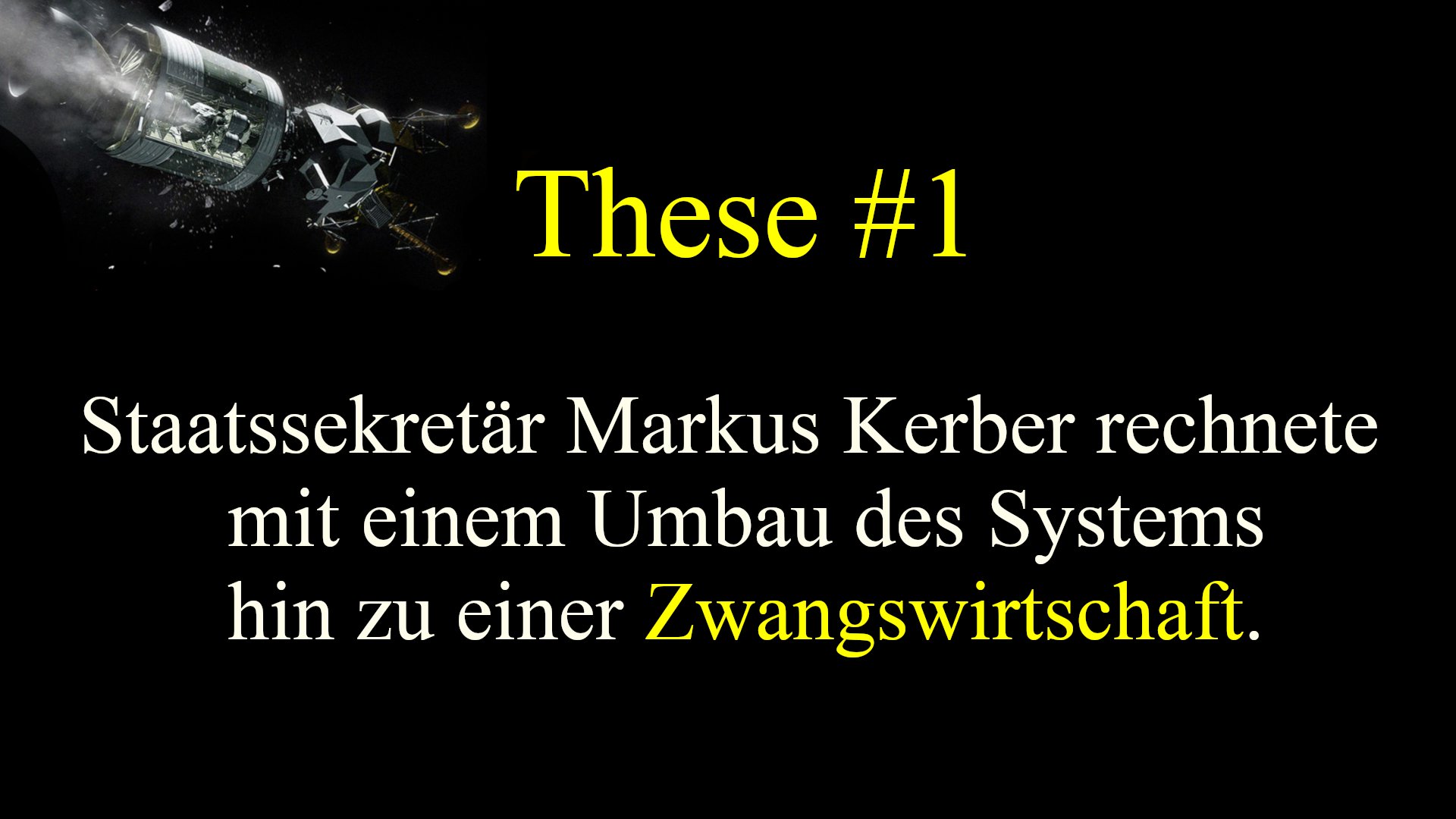15/210: Kerber erwartet, ein mehrmonatiger Shutdown würde BIP-Rückgänge von >10% und systemische Fragen aufwerfen: „Von Konjukturprogrammen IM System zur Transformation DES Systems durch ZWANGSWIRTSCHAFT“. Kerber spricht von „Durchhaltefähigkeit“ und „irreversiblen Wendepunkten“.