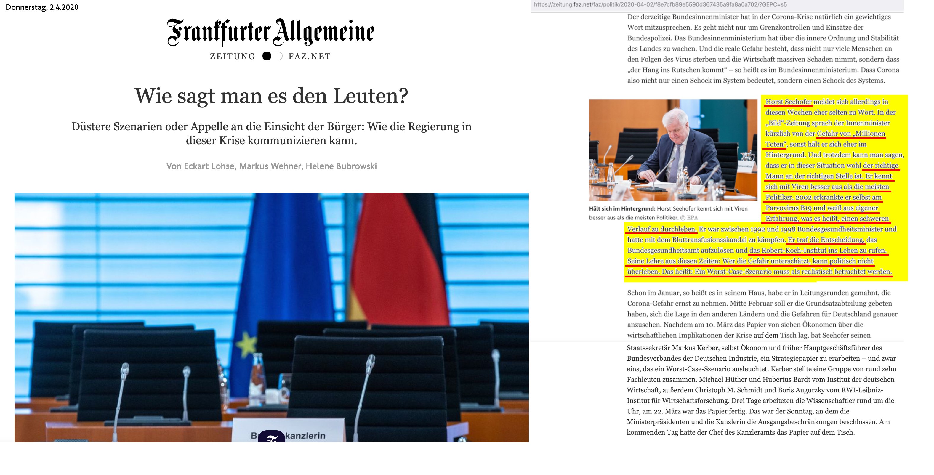 19/210: Meine These stützt sich neben den Emails auf zwei Artikel in @zeitonline und @FAZ_NET, die berichten, dass Horst Seehofer und Markus Kerber selbst schwere Viruserkrankungen durchgestanden hatten, inkl. Herzmuskelentzündung & Krankenhausaufenthalt. bit.ly/3wNikkp