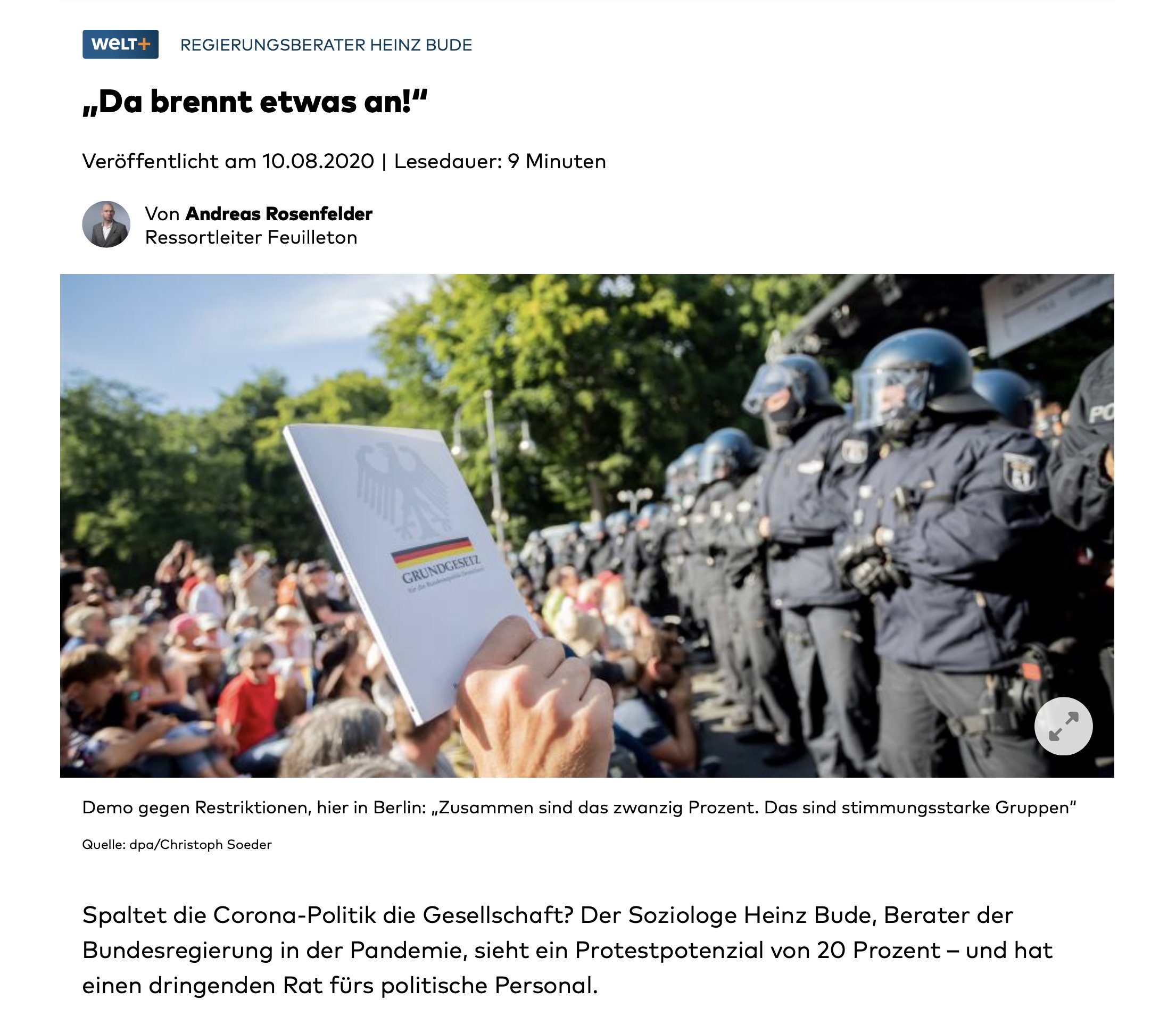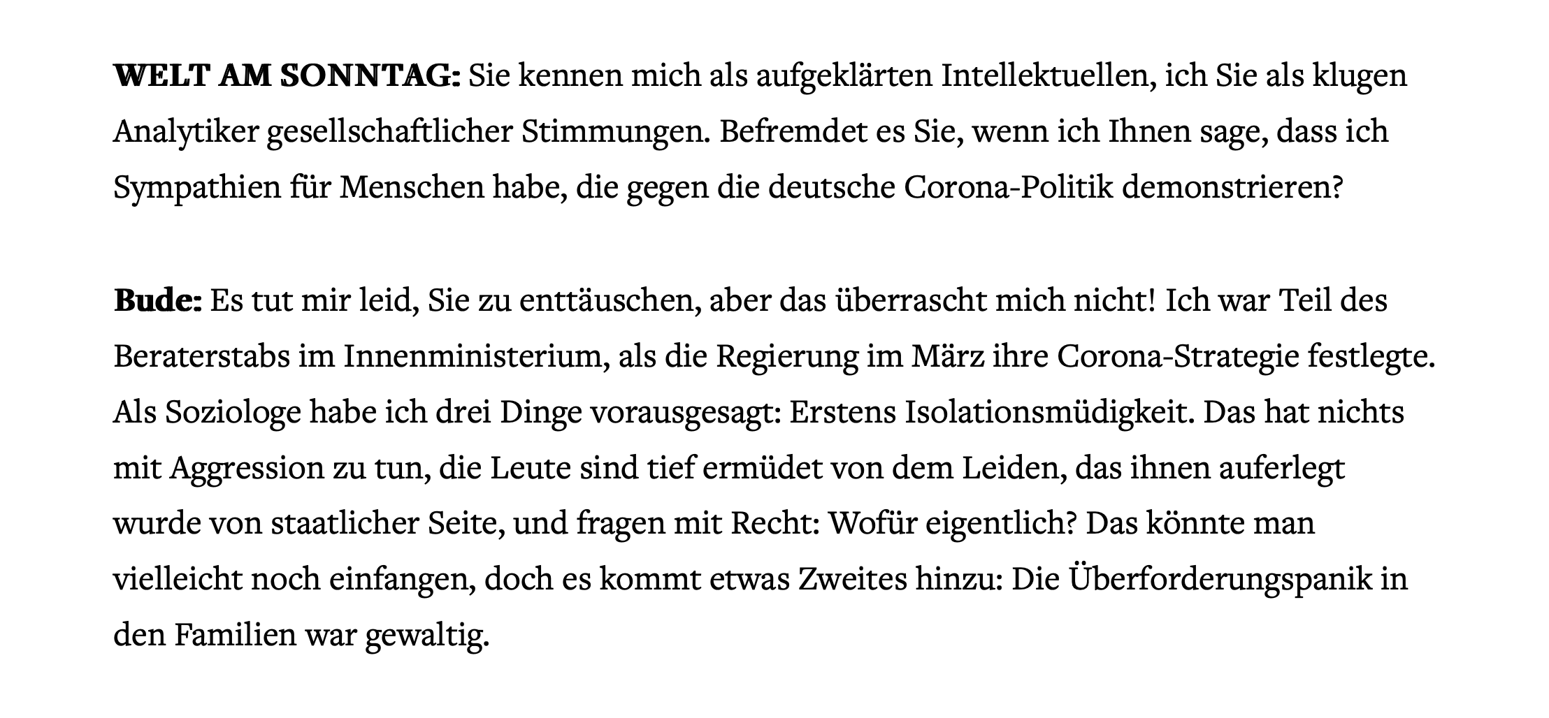 38/210: „Das grundlegende Problem, für das ich mich zuständig fühle, ist das von Affektivität und Legitimität, sprich: von #Angst und #Folgebereitschaft in der Bevölkerung“. Apropos Angst: Im März 2020 hatte Heinz Bude Angst - Angst vor Kindern: bit.ly/3pCXr8F