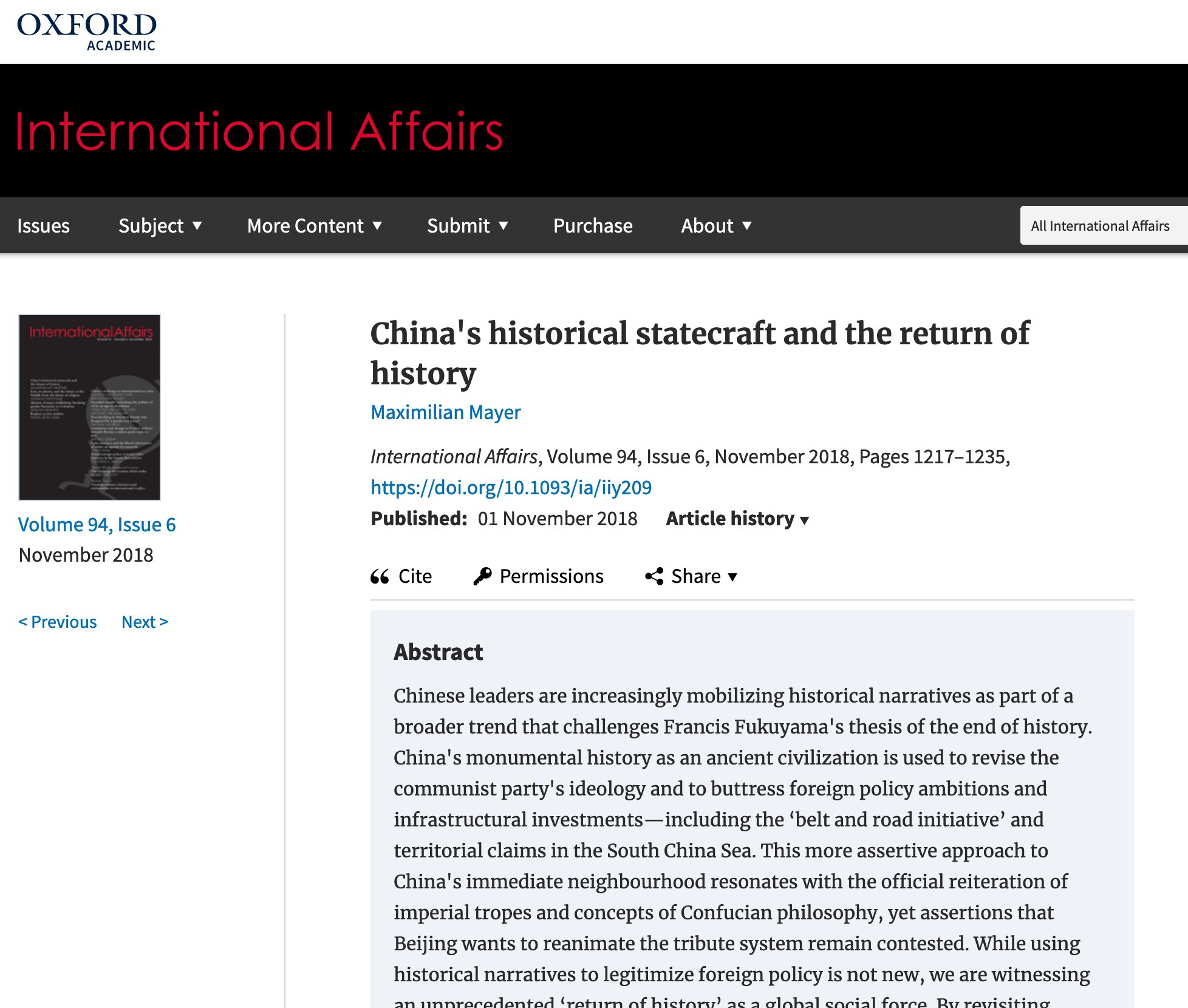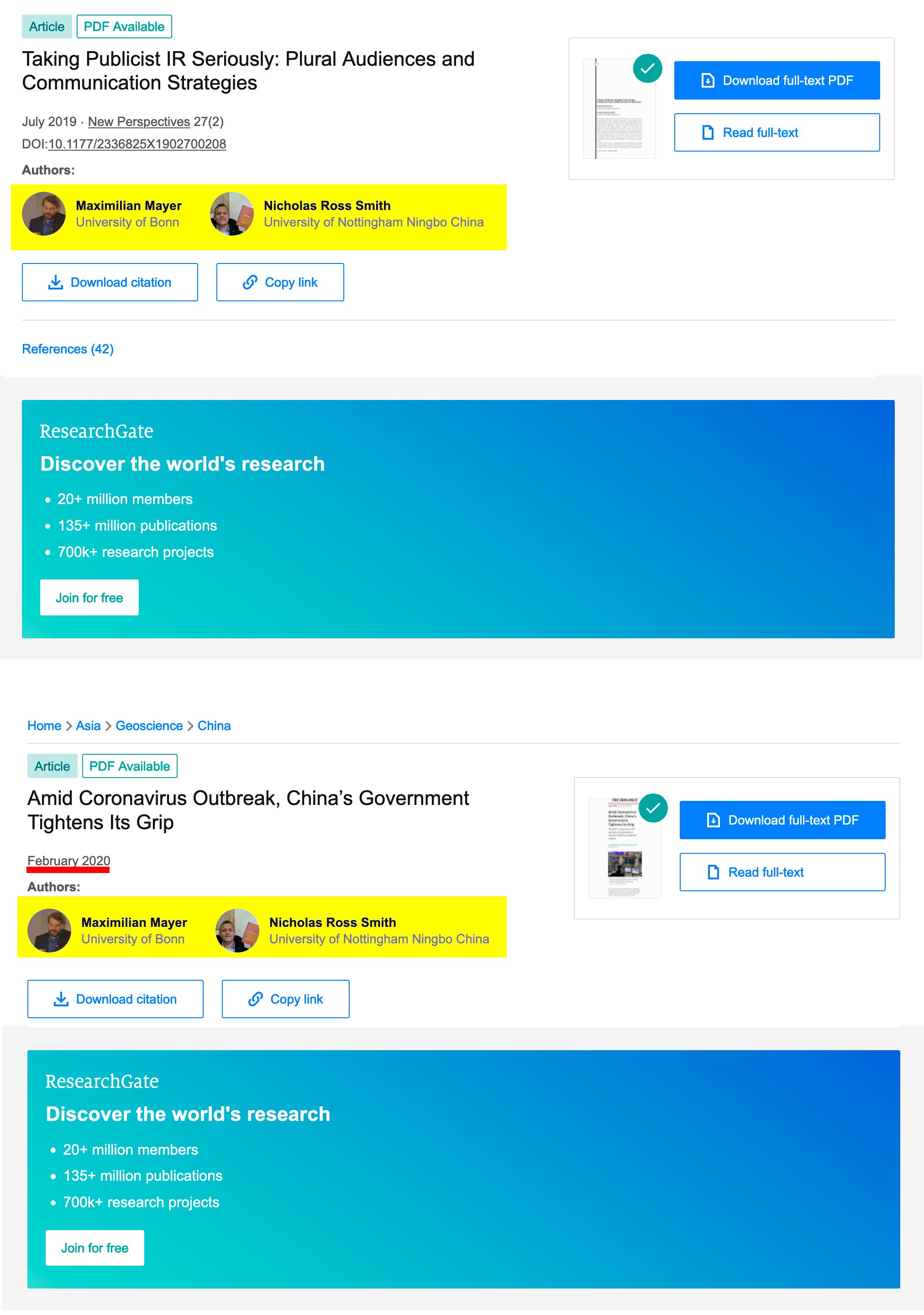 27/210: In @mayer_iras' Signatur erscheinen zwei Quellen als „New Publications“. Sie sind nicht neu, sondern von 2018: 1) bit.ly/3tdILxx 2) bit.ly/3mDBkgA. In beiden geht um Geopolitik und die Notwendigkeit einer strategischen Annäherung an China.