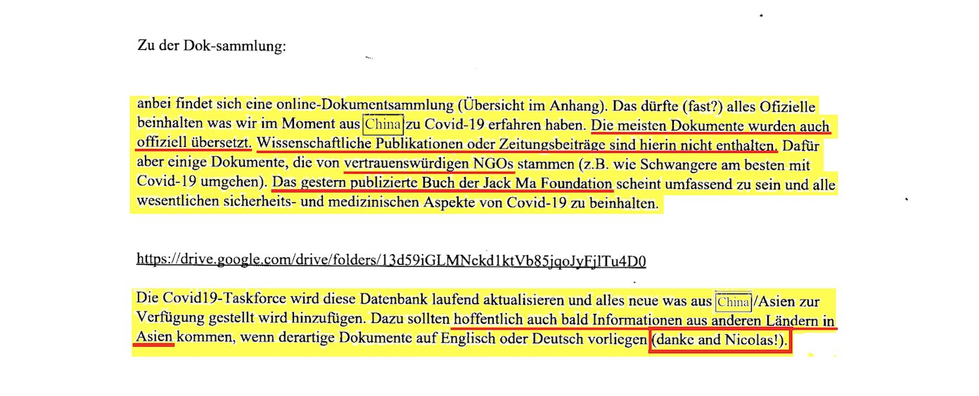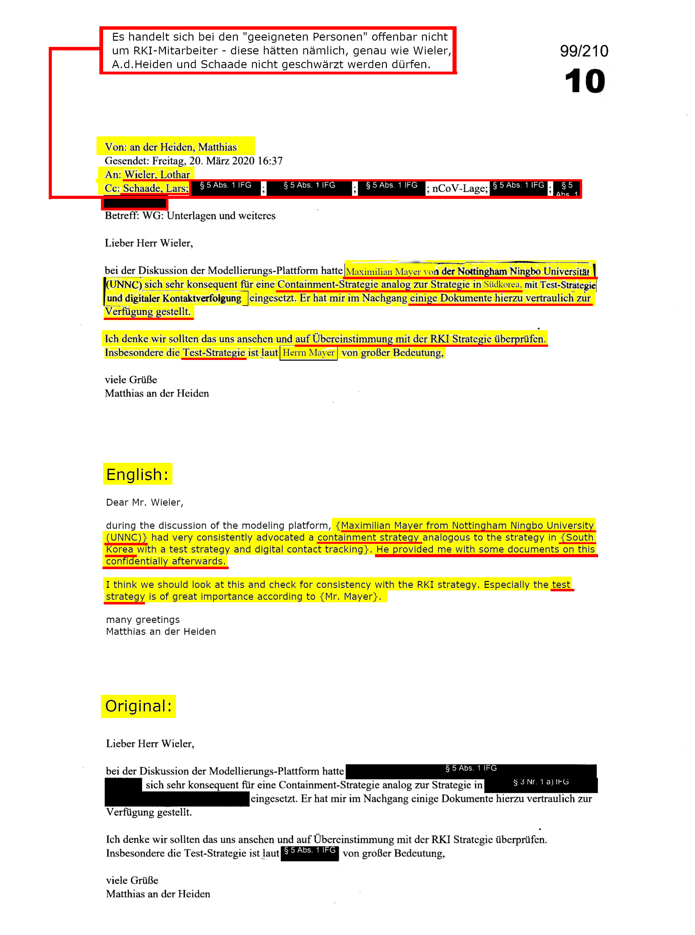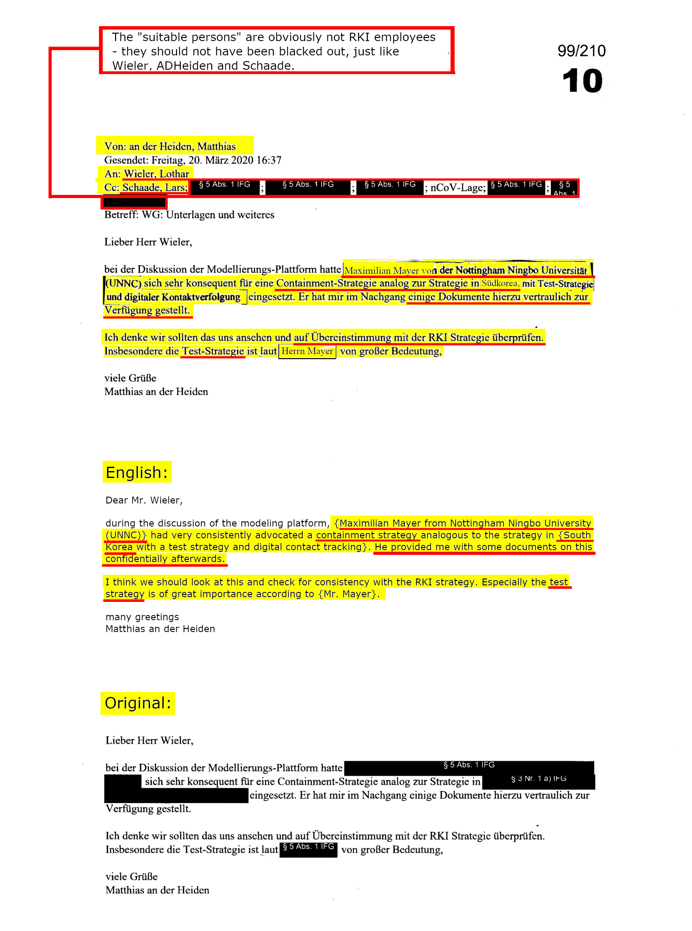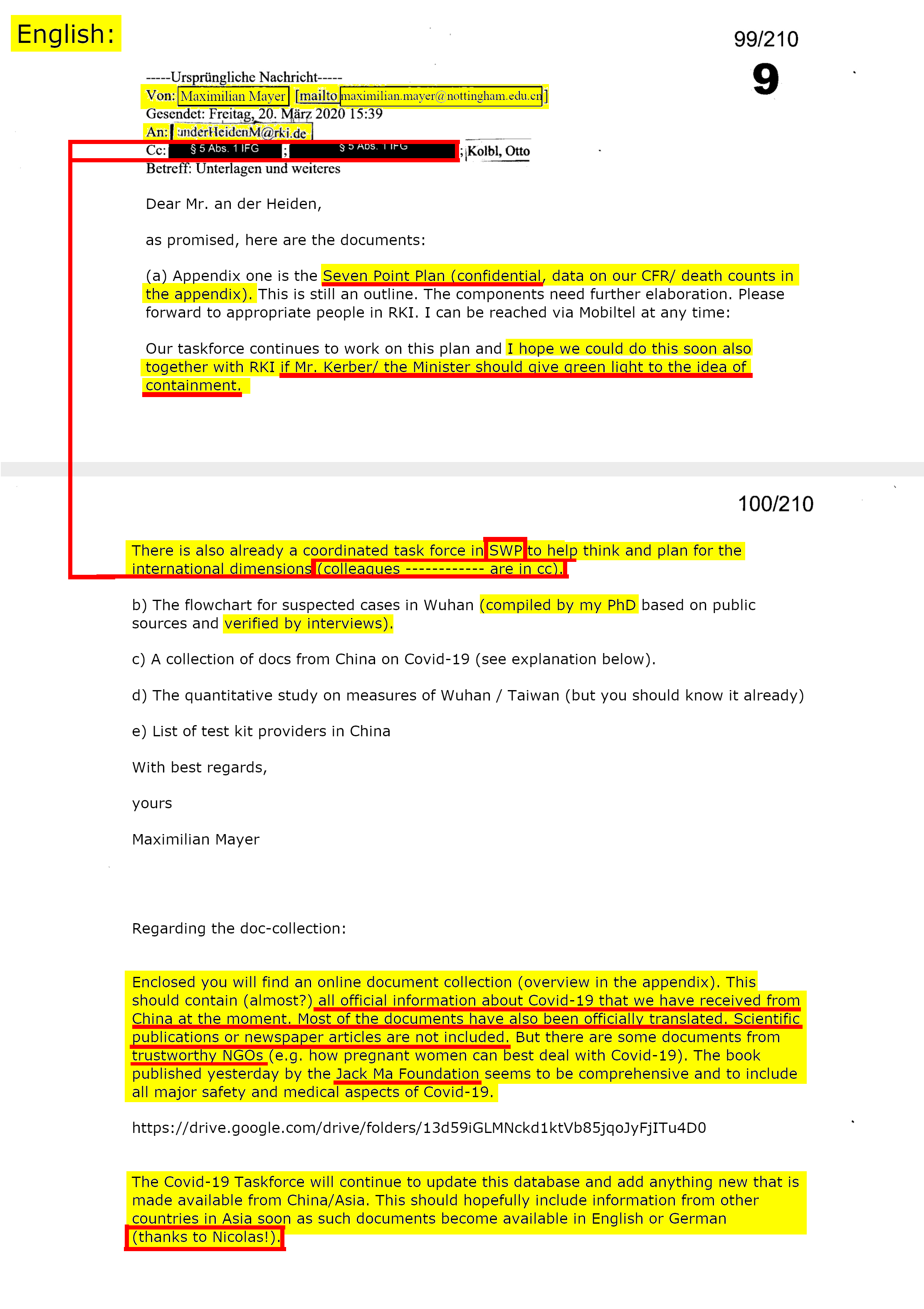 35/210: Ich mag falsch liegen, dass die Mail von @1NRSmith stammt: Smith streitet jede Beteiligung ab. Doch wer ist dann „NICOLAS“, den @mayer_iras in EMAIL 9) erwähnt, und den das @rki_de zu schwärzen vergaß? Der für die Bereitstellung von chinesischen Dokumenten zuständig war?