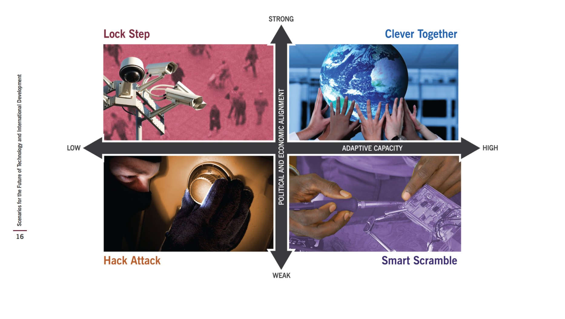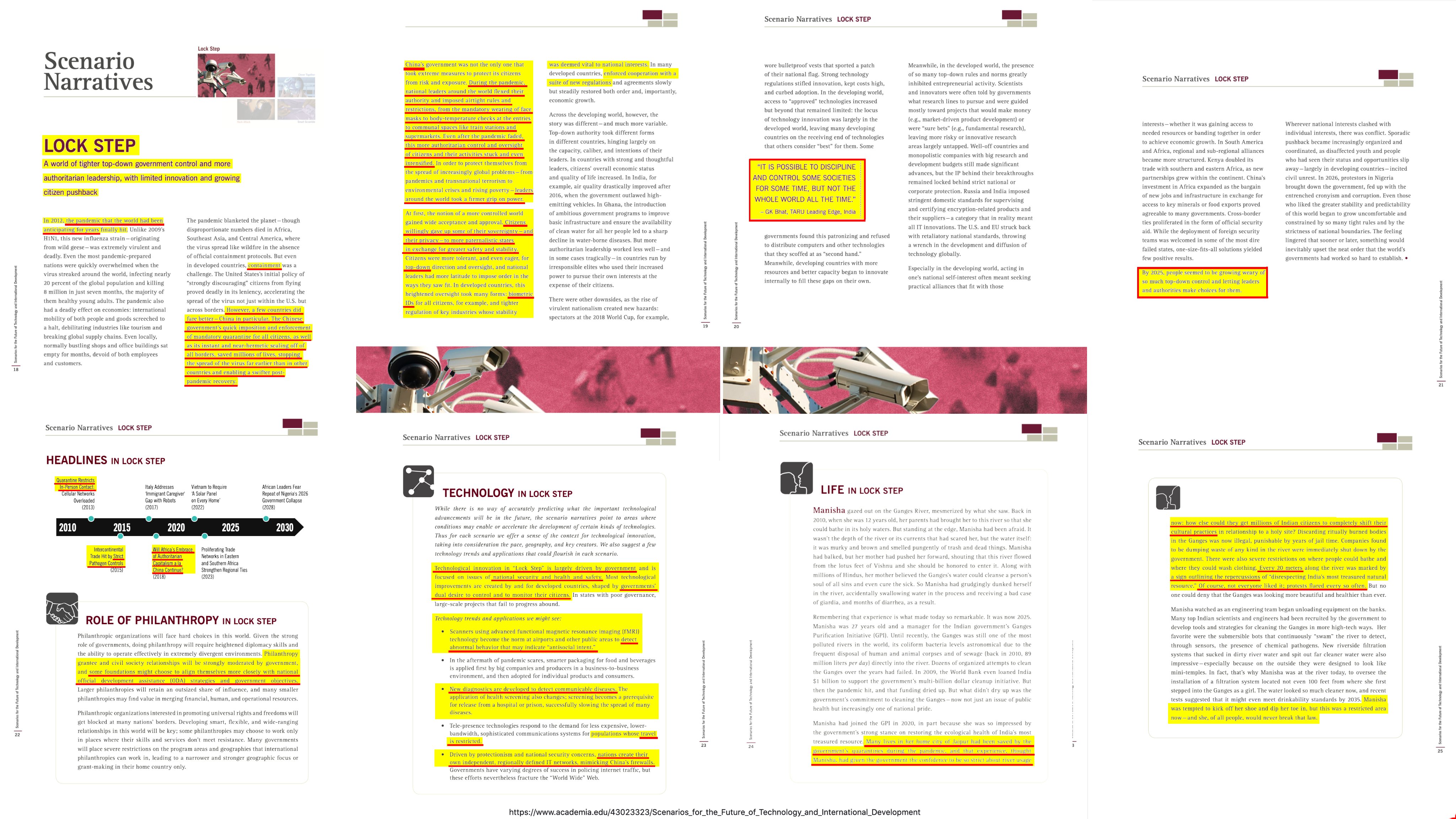 184/210: Eine 4-Quadranten-Matrix stellt mögliche „Entscheidungspfade“ für die Zukunft dar. Offenbar hat man sich für das „#Lockstep-Szenario“ entschieden: Es beschreibt eine Gesellschaft, die sich während einer Pandemie in einen autoritären Überwachungsstaat verwandelt.