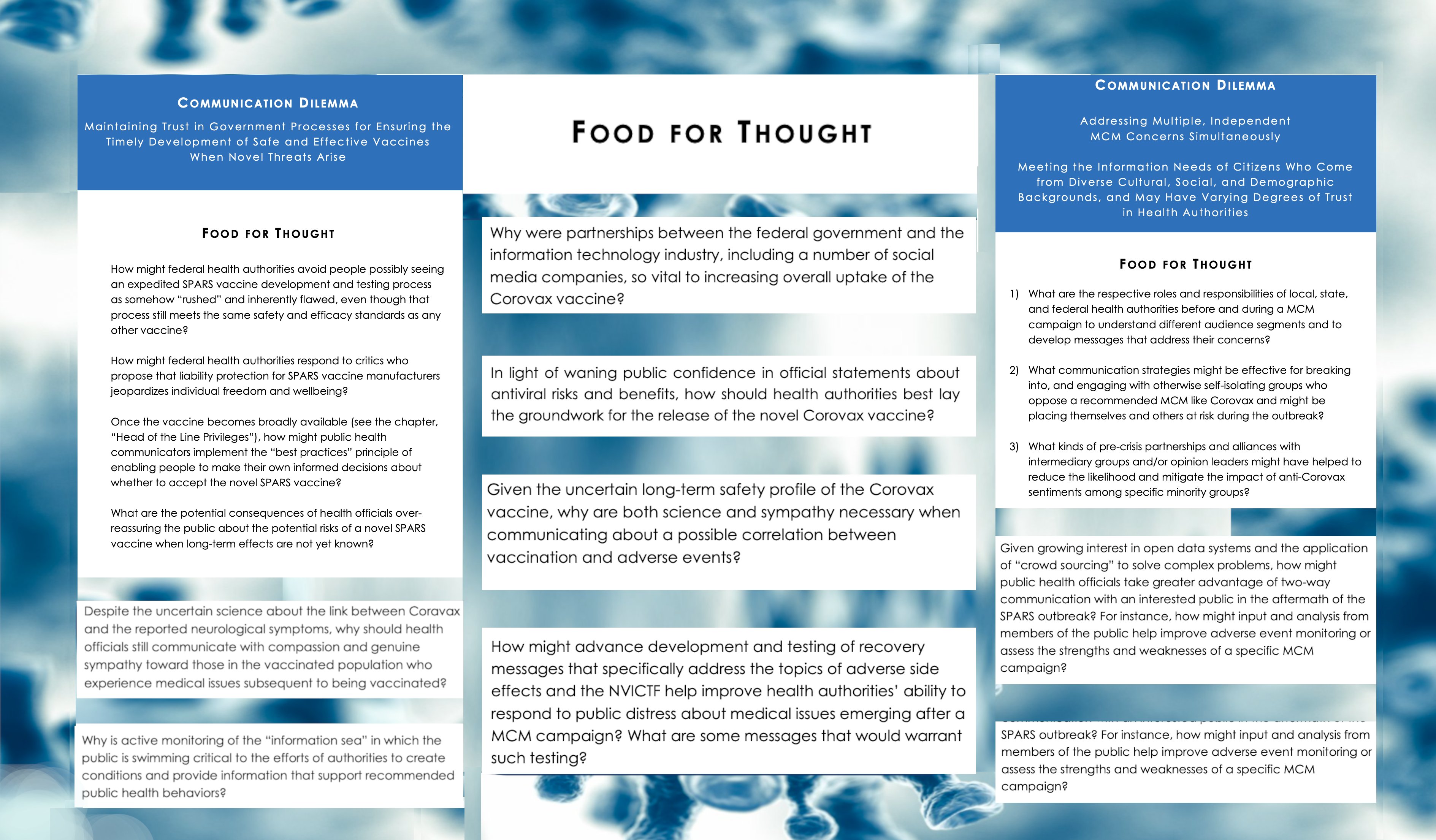 189/210: Eine Coronavirus-Pandemie, ein neue Impfung, die noch nie vorher am Menschen ausprobiert wurde, PR-Strategien für mehr Impfbereitschaft, Verbreitung „richtiger“ Informationen auf SocialMedia, „Diskurskontrolle“ bei Impfschäden. SPARS=SARS, XynBio=BioNTech, Corovax=Covax.